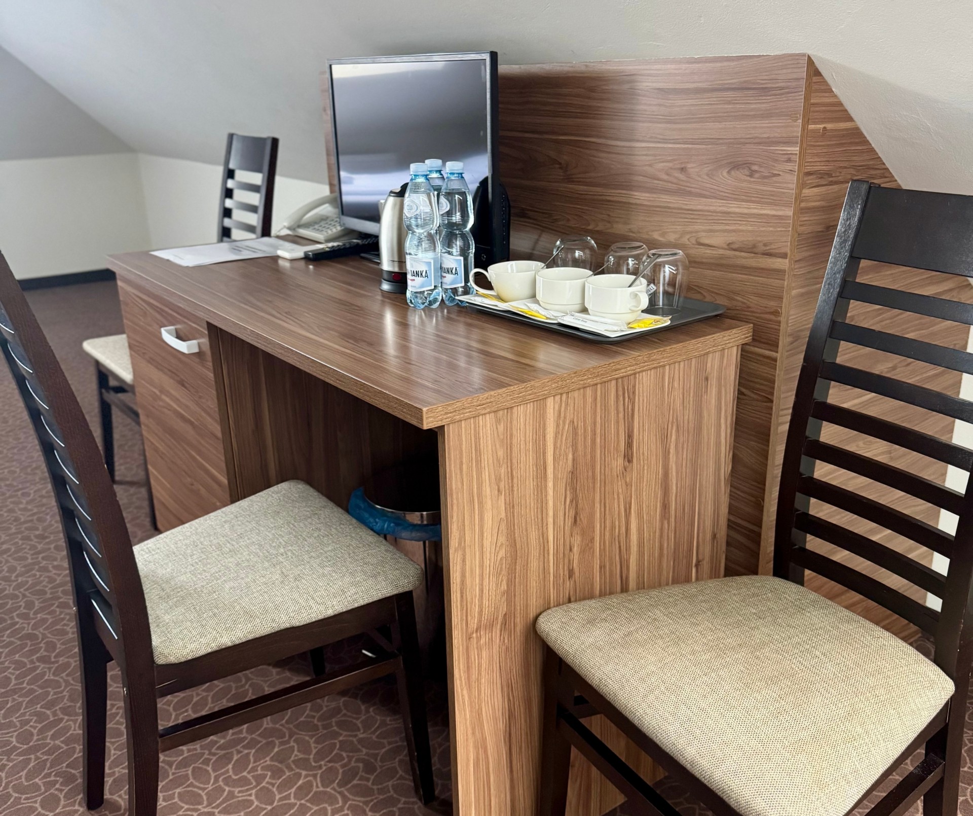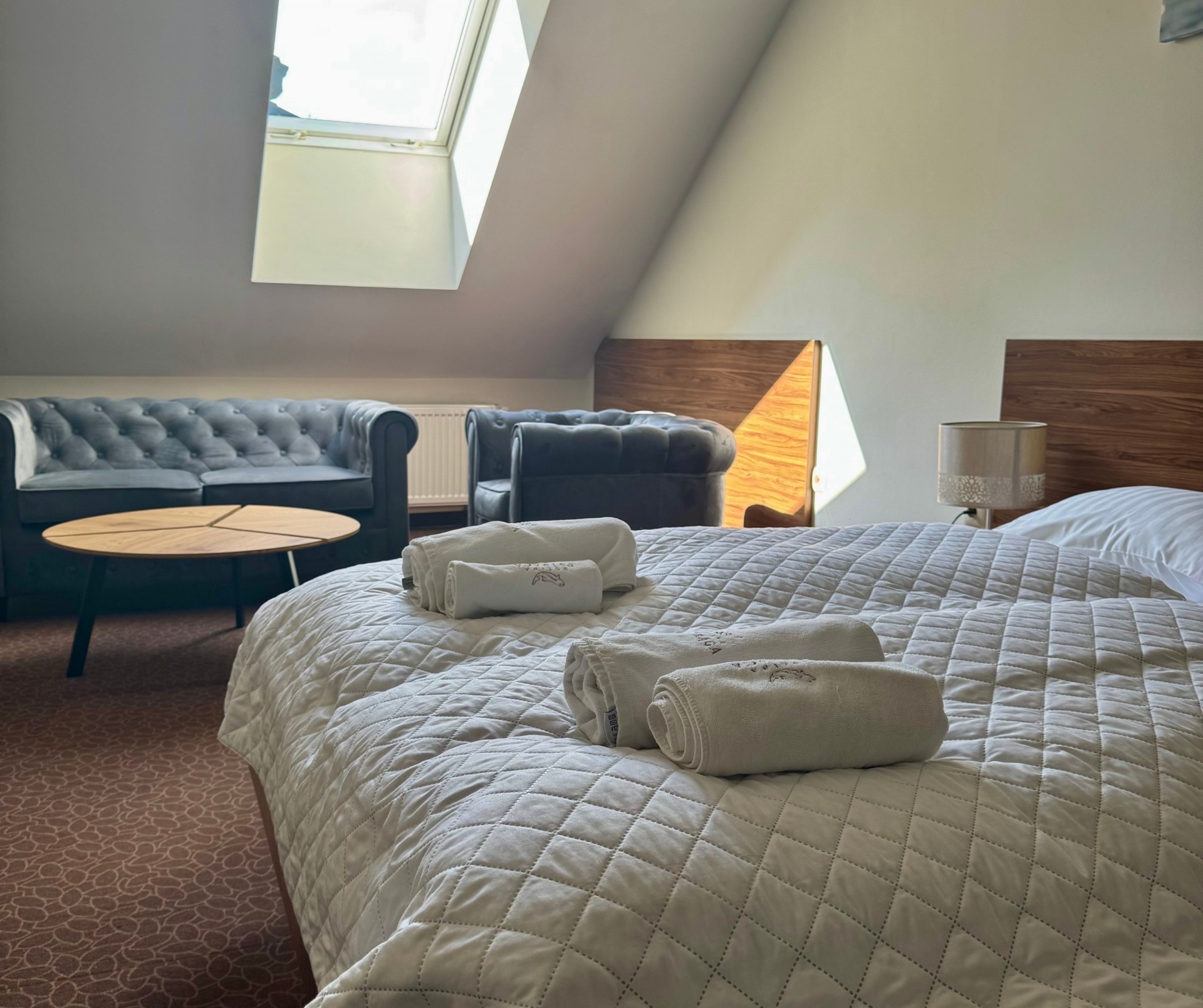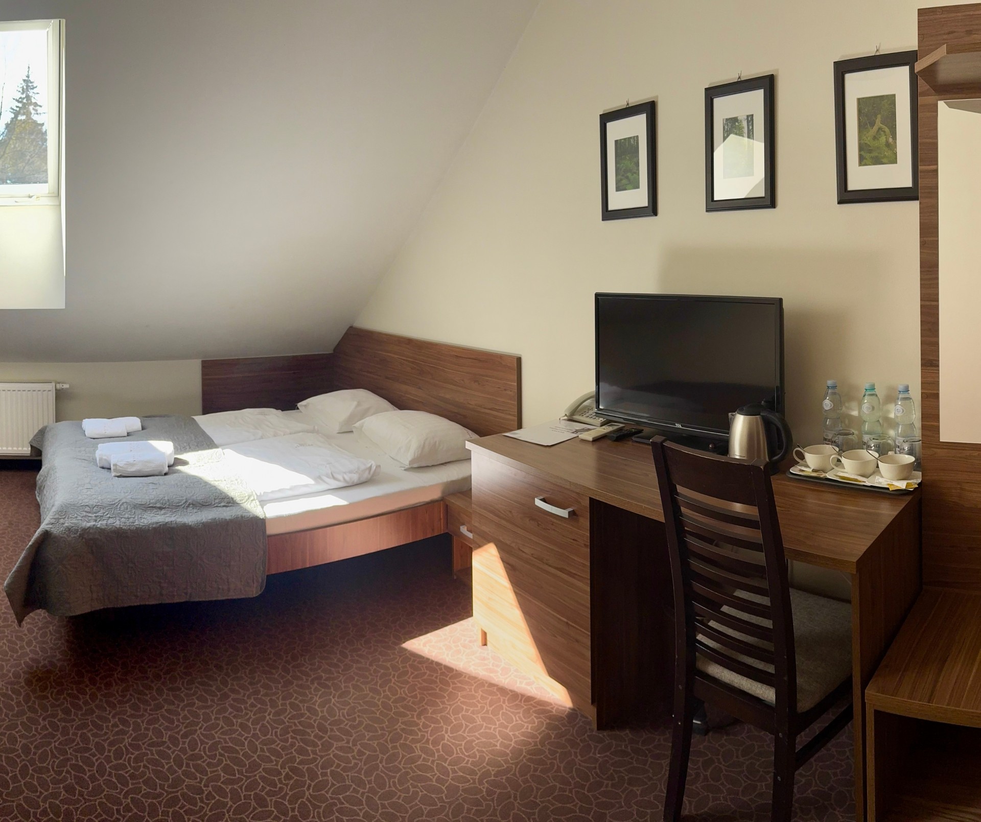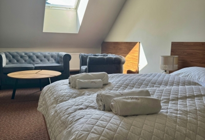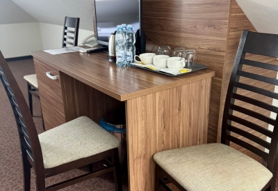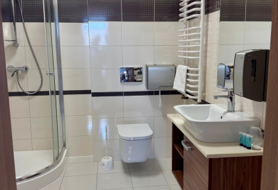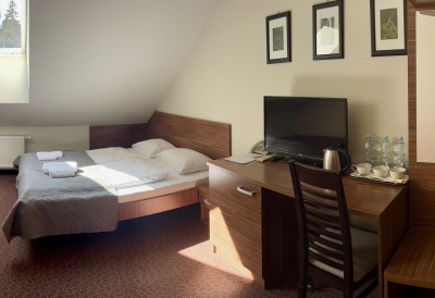 Obok hotelu – bezpłatny, obszerny, monitorowany parking. W cenę pokoju wliczone jest urozmaicone i obfite śniadanie.